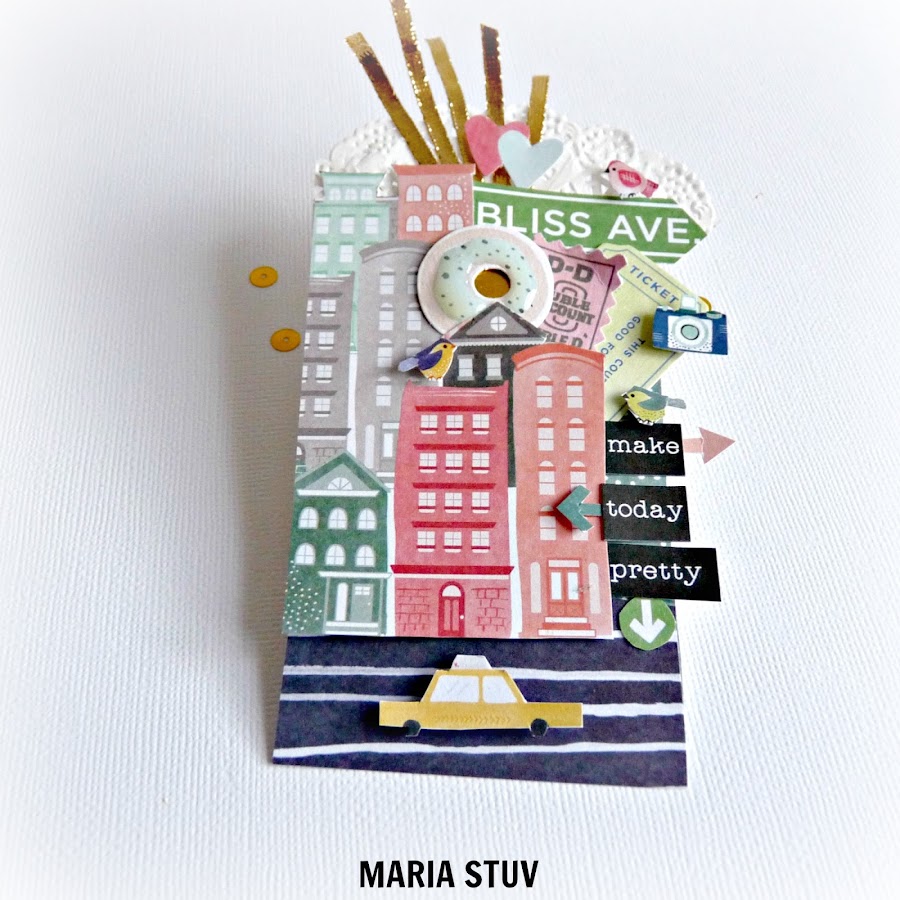 Paty nos ha propuesto un reto para este mes. Debemos crear un tag o una tarjeta sobre esta ápoca del año. Yo he decidido salirme de lo habitual que la gente piensa al decir la palabra OTOÑO (es decir, hojas que se caen, marrones, rojos, tostados, días mas apagados y con menos luz) y he decidido hacer un tag super divertido y alegre con la colección Saturday de Dear Lizzy. Este es mi tag y mi interpretación del otoño la he reflejado en él: