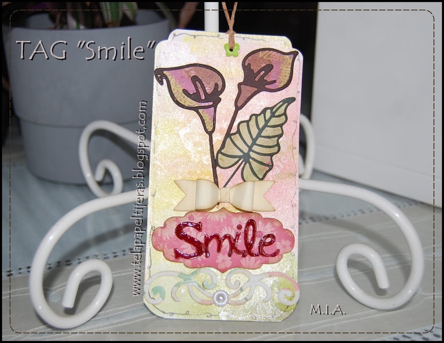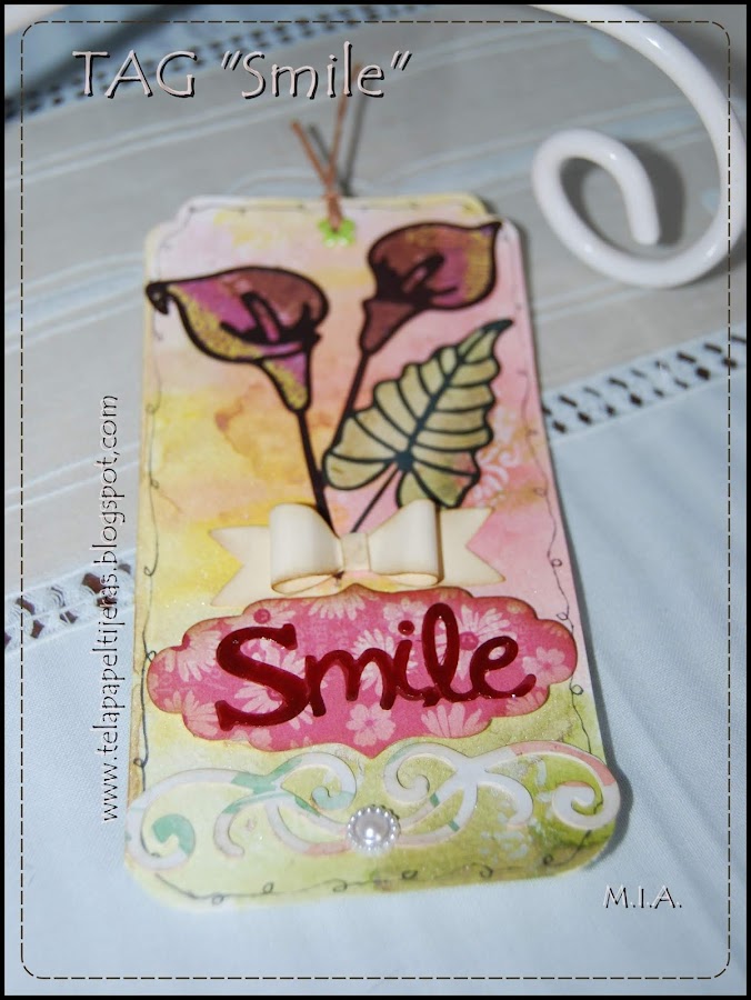 Por último troquelar las esquinas, redondeadas abajo y escalop arriba con la Corner Chomper, poner un eyelets en forma de flor con la Crop-a-dile y un trozo de rafia marrón.