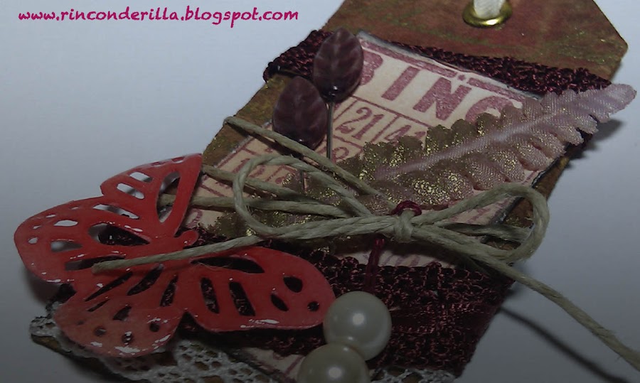 Para finalizar, añadí un eyelet en dorado envejecido, una cinta en color crema y unas perlitas.