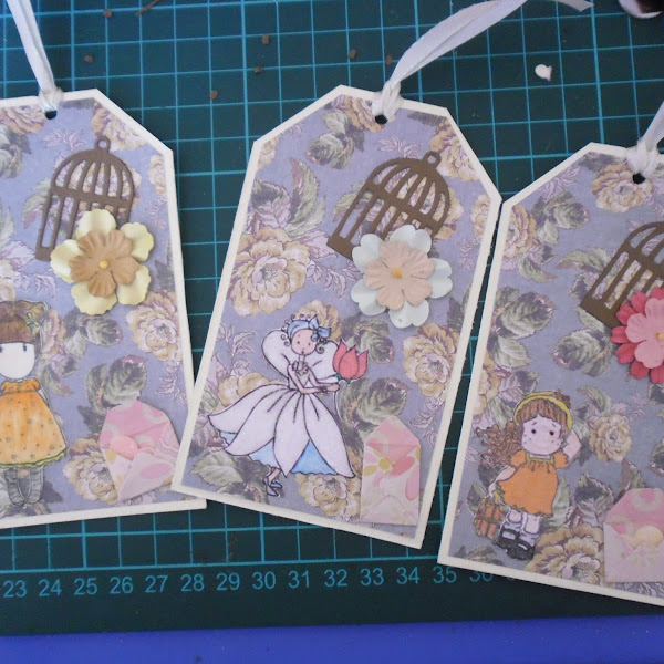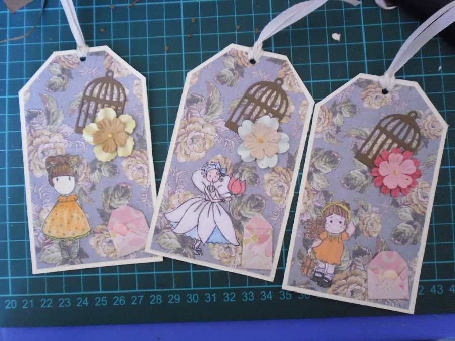 Mis Tags los hice súper sencillitos con unos sellitos y unas jaulitas, súper románticos.