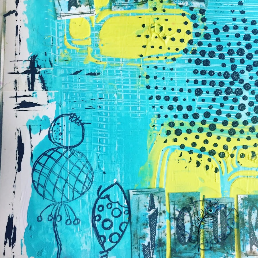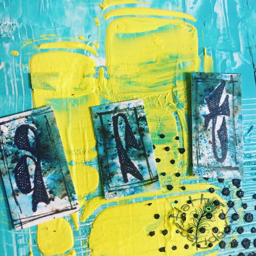 No contenta con poner uno, puso como cinco!!!!! y son washi, pasta de textura, amarillo, turquesa y acrílicas, ahí es nada!