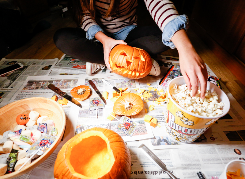 Si queréis hacerlo con niños, porque seguro que les encanta, aconsejo utilizar velas falsas y dejar que sea un adulto el que se encargue del manejo del cuchillo. En algunas tiendas, como Tedi, venden packs de tallado de calabazas especiales para niños, que son de plástico, así que podéis recurrir a eso.