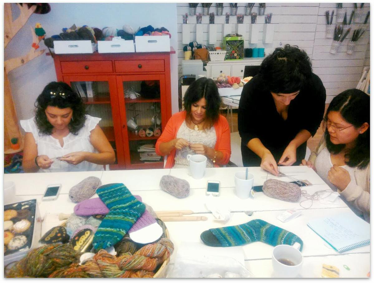 Otro taller de calcetines, esta vez en Mariposa Tricotosa. Como siempre, cuatro días dándole a las agujas y aprendiendo la construcción de un calcetín básico desde la pierna a la puntera .