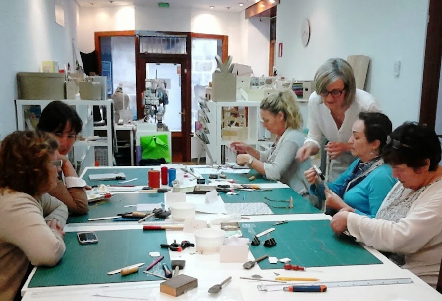Buenos días!! como no puede ser de otra manera si empiezas la tarde con un buen café, termina mejor.Podéis ver el resultado, unos cuadernos preciosos. Las alumnas aplicadas y muertas de la risa con los chistes de Ascen que estuvo inspirada toda la tarde.