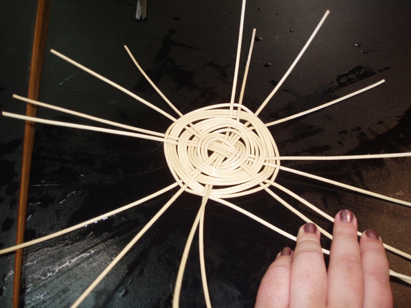 Antes de empezar a "crear" hay que sumergir las varillas en agua para humedecerlas bien y que se vuelvan flexibles, asi será más fácil manejarlas y no se astillarán. Truco: con el agua se vuelven marrones, asi que si nuestro material se pone blanco es señal de que se está secando y hay que volver a humedecerlo.