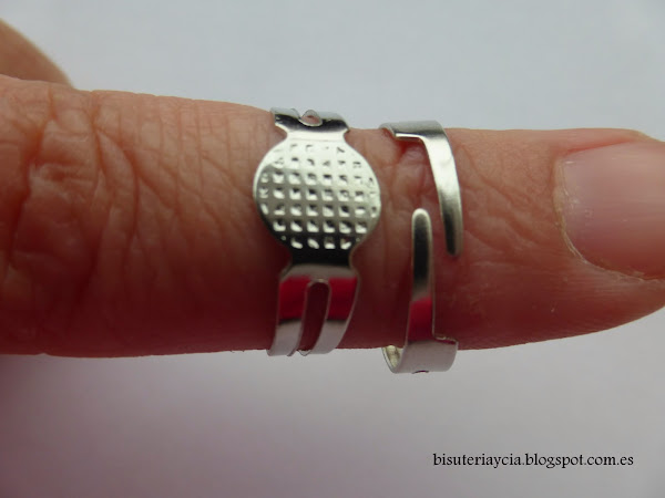 Ahora colocaremos la base de los anillos en el sitio donde estaban colocados los pendientes, yo he usado anillos ajustables, así si quiero regalar uno no tendré problemas con la medida del dedo.