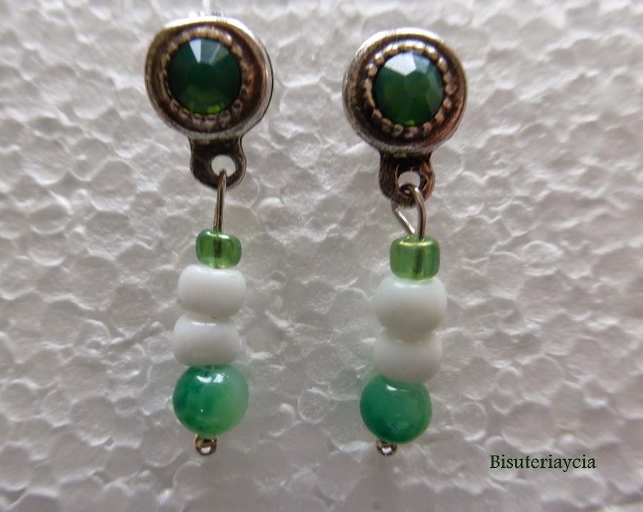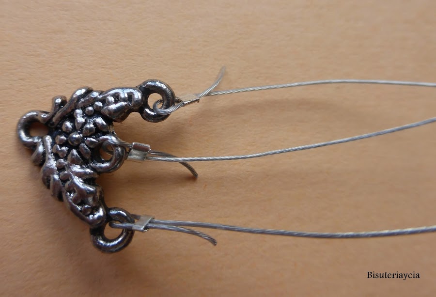 Como veis en la imagen solo he enfilado unas bolitas y unas piezas de rocalla a un bastón con punta de alfiler y lo unido a la base del pendiente.