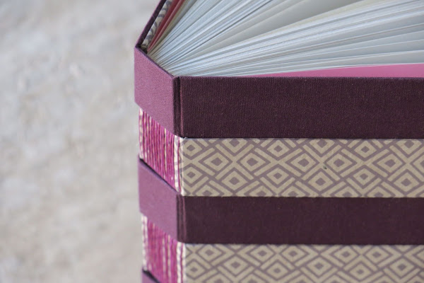 En este monográfico realizaremos una encuadernación con la técnica de estructura cruzada o "long stitch through slotted wrapper cover", que se podría traducir por algo así como "puntada larga a través de ranuras en el lomo" alternando ambas partes.