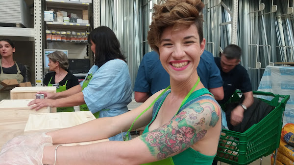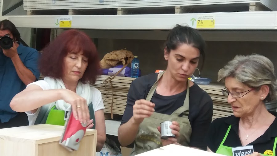 Así de bien nos recibieron, con la merienda preparada y un kit completísimo de productos Xylazel y Nespoli. Tanto Olga, de Baldosas Amarillas, como Jorge Alonso, de Xylazel, y por supuesto, los representantes de Nespoli y Leroy Merlin, estuvieron pendientes en todo momento de que no nos faltara de nada, darnos todas las explicaciones necesarias, y contribuir al fabuloso ambiente creado entre todas las bloggeras. A muchas de ellas ya las conocía, a otras tuve la suerte de ponerles cara gracias a esta cita.