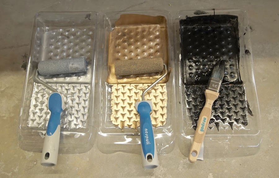Nespoli nos presentó una amplia variedad de productos fantásticos para la aplicación de la pintura: rodillos de teflón, portalijas, agitadores de pintura con abridor incorporado, paletinas con capucha... estas últimas me encantaron, porque aguantan (sin que se quede seca la pintura) hasta 48 horas sin necesidad de lavarlas!
