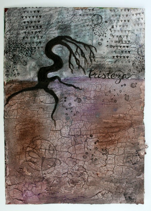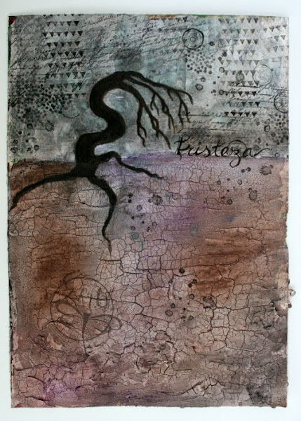 Como siempre comento, hay muchos medios que se usan para la pintura en acrilico, esta vez, esta pasta da un acabado muy interesante cuando se seca, especial para mi sentimiento, abatido, árido, seco... triste!