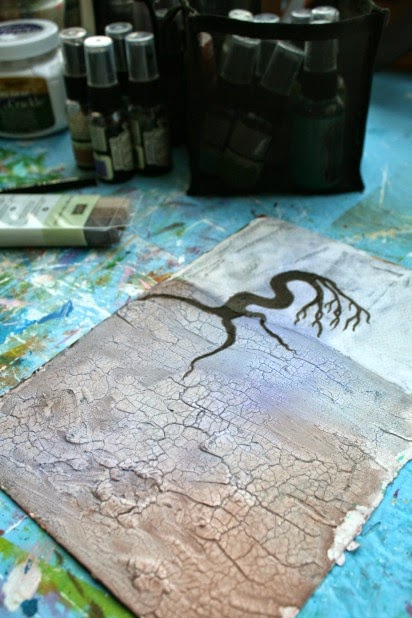 Si no tienes esta pasta, puedes probar con una pasta para texturas normal. Das una capa no muy gruesa y con el secador, muy caliente le ayudas, a veces funciona muy bien, otras no tanto, es cuestión de probar. También se puede probar con el acrilico si el color es bien pastoso. Cada una de estas opciones da un craquelado diferente.