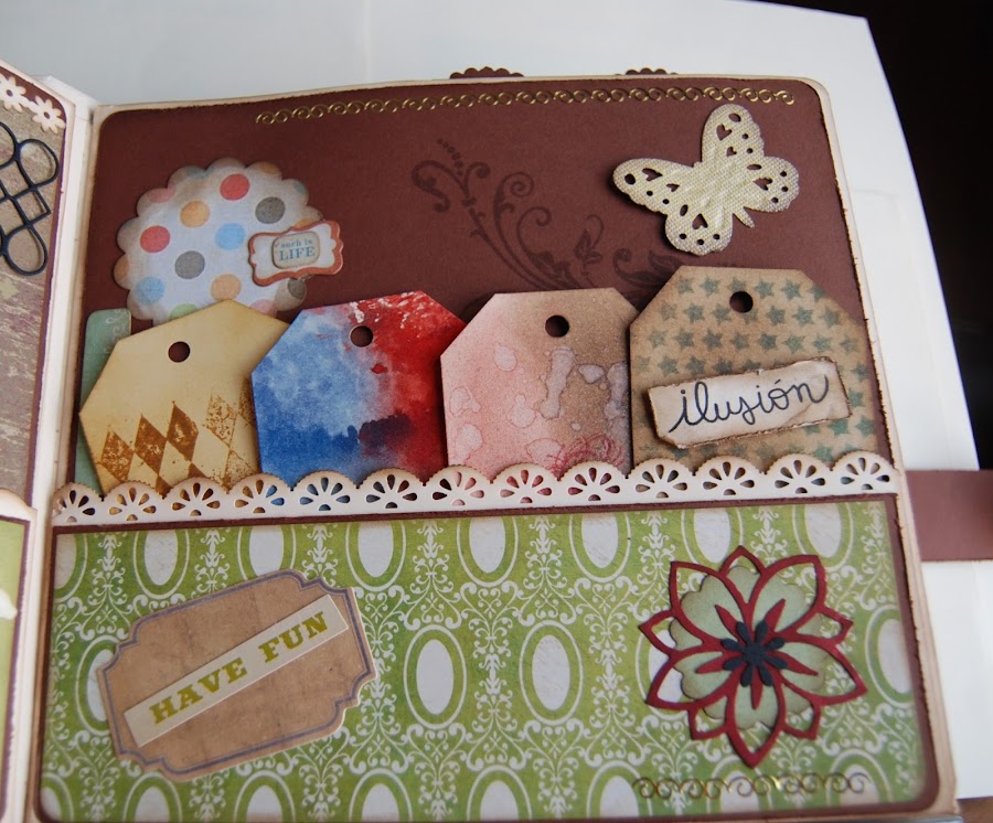 Álbum TAGs, muy útil, completo y colorido...Hojas dobles con bolsillos para tener guardados y ordenados los tags de las distintas técnicas con tintas y sellos los Talleres que hemos hecho poco a poco...