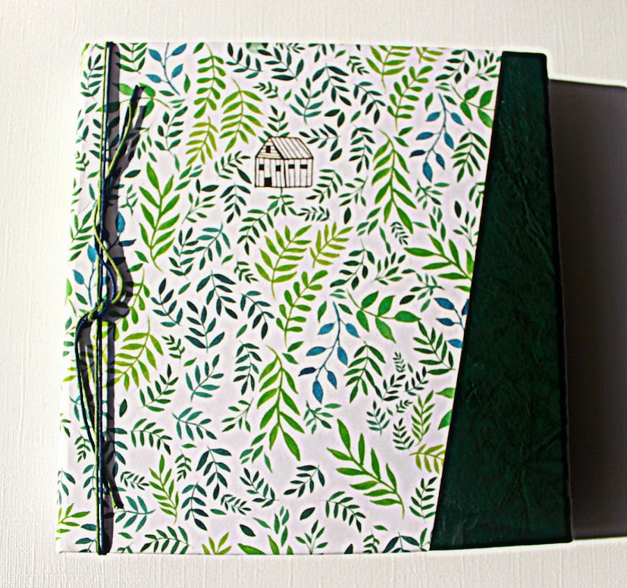 Es un álbum de 18x18cm con pastas de cartón que forraremos y lomo de piel, con la estructura interior cosida.