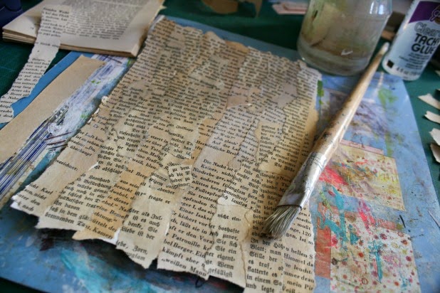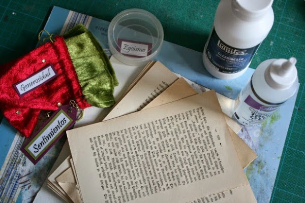 Este mes usaremos un material que es como parte de mi firma, hojas de libro viejo. Y qué más?