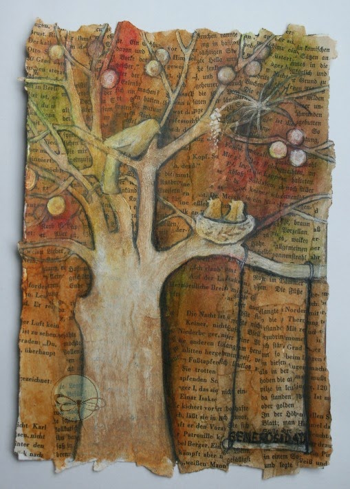 Como siempre, si llegas primero por aqui, te digo que aún puedes empezar el taller, nunca será tarde, tenemos un año por delante!( aqui se comienza y se deben leer las entradas sigtes. también para enterarse de toda la dinámica) y todos/as podremos interactuar en el grupo de facebook: Mixed media y cia. donde ya se ha ido formando un bosque hermoso...