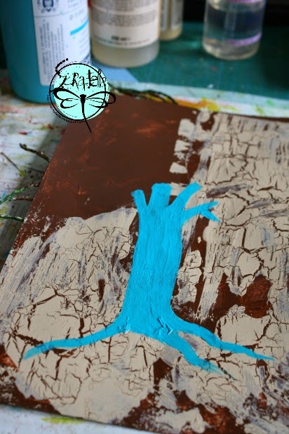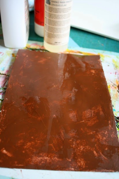 Perdón! olvidé tomar la foto de este paso, pero así me quedó el fondo con la cola como "craquelador/agrietador" una vez seco: