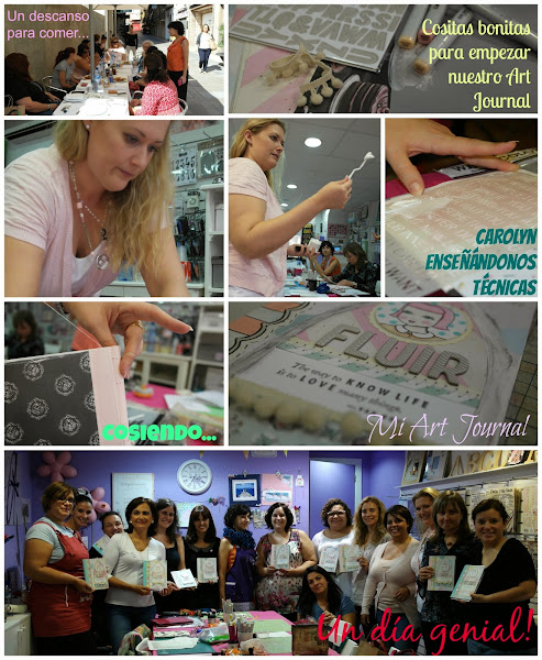 Desde las 10 de la mañana hasta las 20,30h, dos talleres preciosos de la mano de Carolyn Peeler, increíble la organización, la naturalidad de María, que lleva la tienda de maravilla y la simpatía de Carolyn. Y que decir de los talleres...me encantaron!