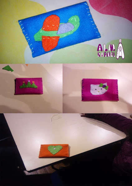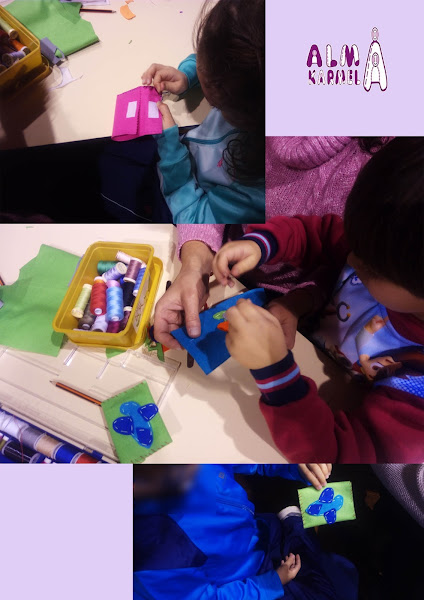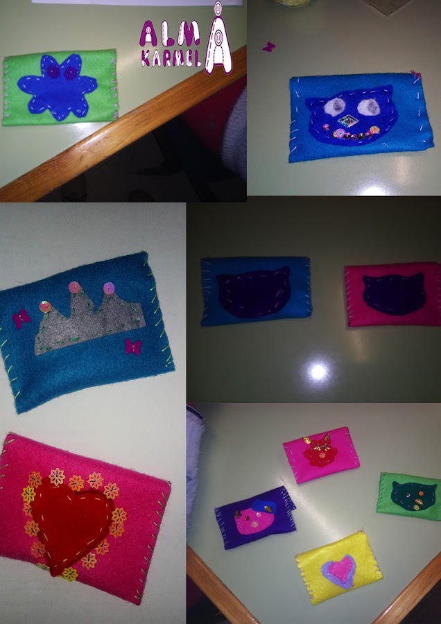 Lo bueno es dejarles crear como quieran, pudieron elegir los colores, el dibujo, los hilos, los abalorios..... todo y así cada una se creó una carterita única.
