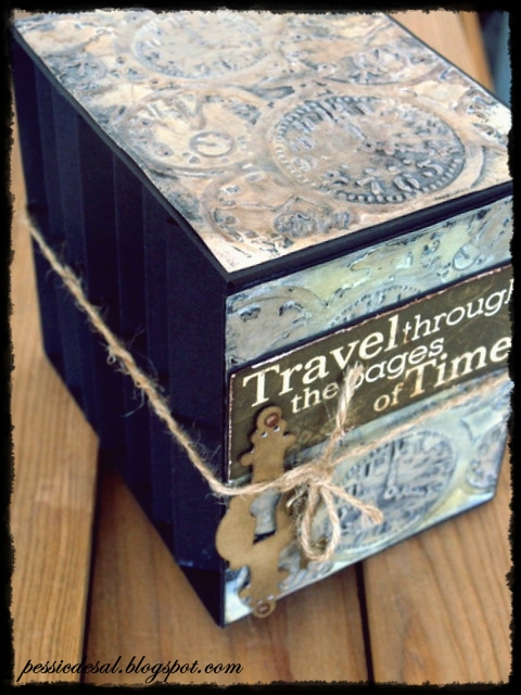 Sábado 8 de ocutbre.Taller Archivador túnel del tiempo: Taller realizado por Yolanda de Pessic de sal. Caja por fuera y archivador en acordeón dentro... usaremos varias técnicas:emboss con la big shot, gesso, tintas y utee, adornos vintage y envejecido que la convierten en un verdadero túnel del tiempo, un lugar donde guardar nuestras fotos más antiguas o las que esperan para ser colocadas en nuestros trabajos.