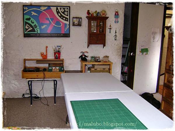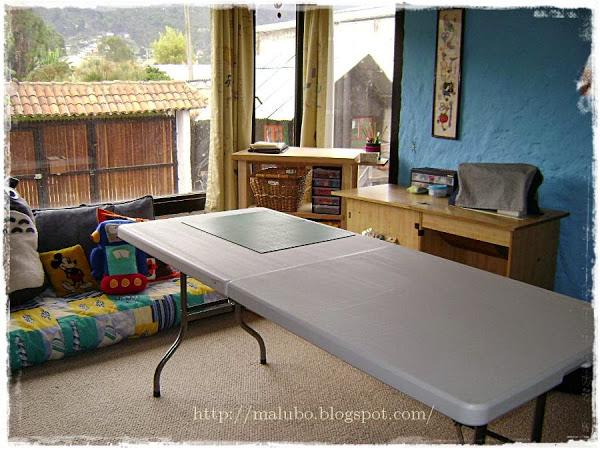 Algunos de los muebles son hechos por mi marido, que a propósito está estrenado blog, los invito a pasar por ahí, se llama Hecho en casa - Taller . En la primera foto de esta entrada pueden ver un soporte magnético donde tengo las tijeras, en su página los pueden encontrar. Me parecen súper cómodos y bonitos, para los varios oficios que se le pueden dar.
