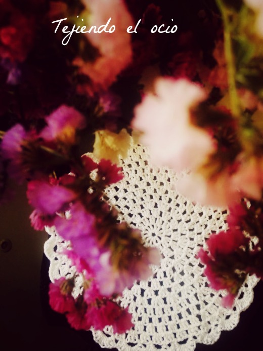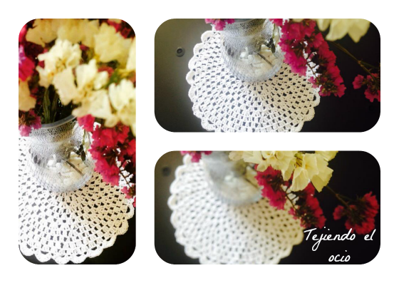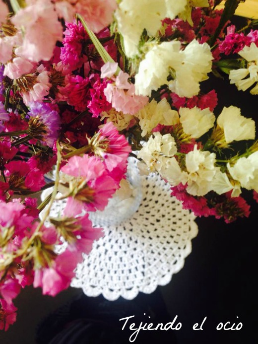 Se me ocurrió la idea de darle un toque mas cálido a esta mesa y tejí un tapete a ganchillo. Ahora el florero tiene otro toque y resalta mucho la mesa.