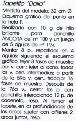 "Dalia" es el nombre que figura en la revista "Punto Artistico" N 903 de Burda, de donde lo saque. Pero lo que más me gusta es el calado alrededor de la Dalia, como si fuesen muchisimas mini plumas de pavo real.