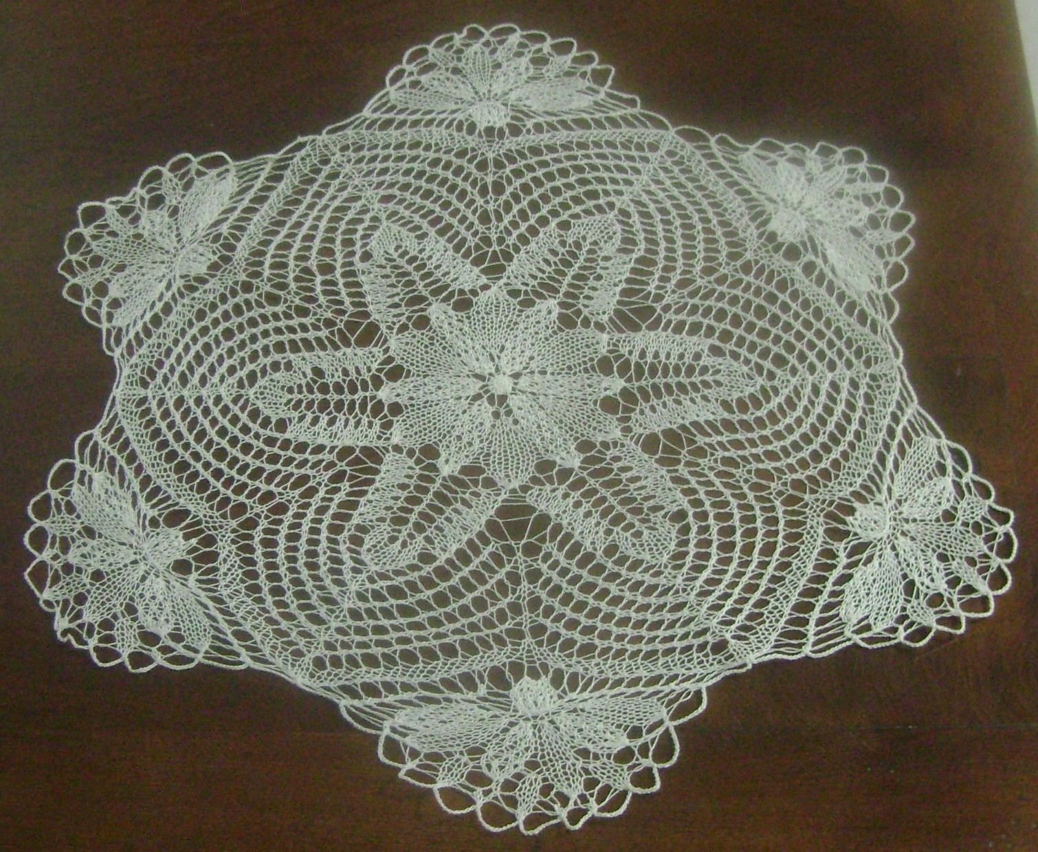 Esta belleza mide 39 cm, si bien en la revista donde lo encontre (Burda, Punto Artístico, E 203 ). aparece como mantelito individual de 44 cm, a mi me quedo un poquitín mas chico y no por ello menos hermoso !