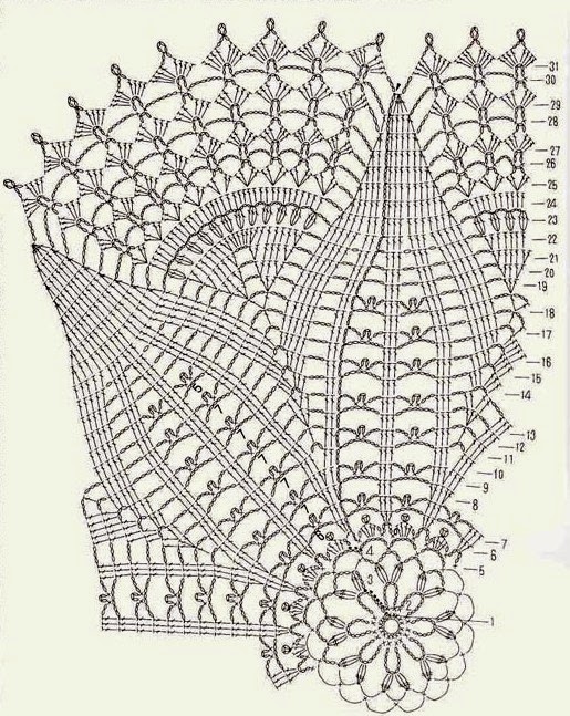 Este tapete redondo ha quedado de 26 cm. Como empezar.... Levantar 6 p y tejer º y 2º v. al derecho. A partir de la 3 v.cerr seguir el esquema gráfico repitiendo 6 veces el motivo. A partir de la v. 23º, tejer 12 veces el motivo. Después de la v. 60º cerrar los puntos con ganchillo a p. b., intercalando 12 cadenetas Se animan ?......