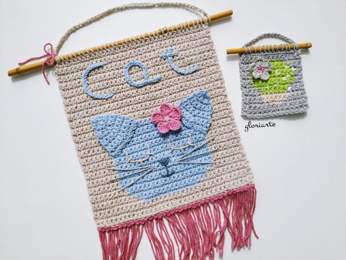 Y el tapiz grande, es de un gatito, o gatita si le añadimos una flor , es más grande que el tapiz cactus, te muestro el gráfico: