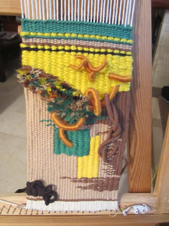 Este tapiz, lo estoy haciendo para aprovechar los ratos que no tengo que hacer reposo, pues estoy convalesciente, y no me permiten que esté muchas horas tejiendo.