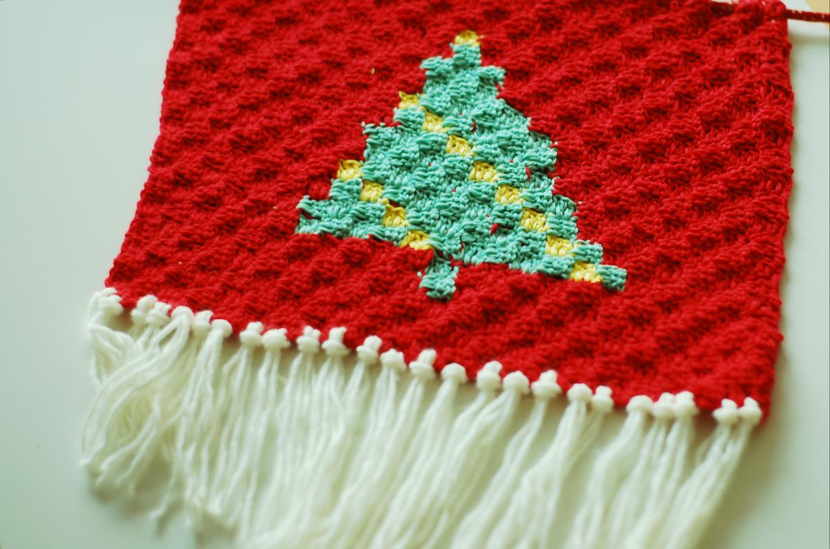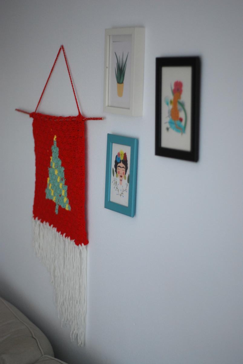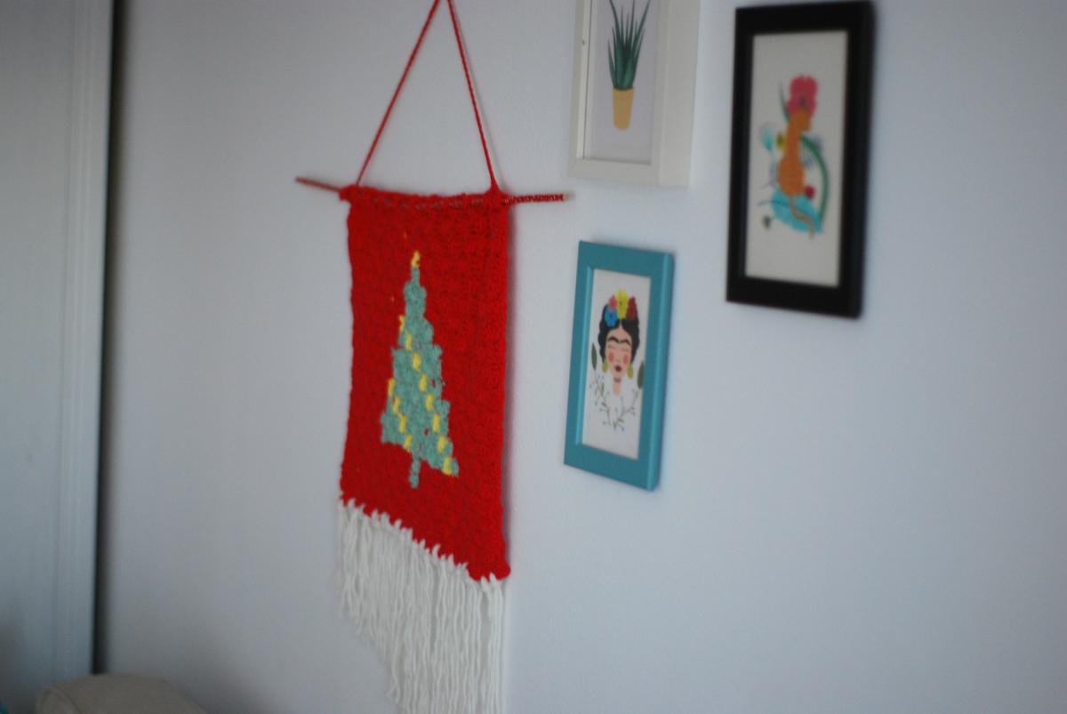 Yo he visto un montón de mantas con esta técnica, pero puedes hacer de todo. Primero pensé en hacer un neceser, pero como el tamaño que me quedo no me convencía, al final opté por hacer este tapiz navideño que colgaré en alguna parte del comedor.
