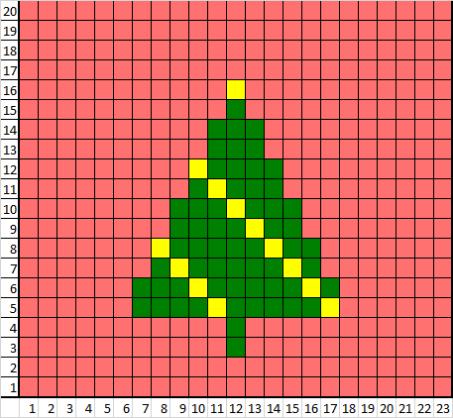 He escogido un diseño muy básico ya que era para aprender, con un arbolito simple y unas guirnaldas de decoración para ver como iba cambiando de diferentes colores.