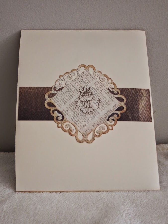 La base es una cartulina A3 de color beig, doblada por la mitad. Los papeles son de TIM HOLZT y de dos colecciones diferentes. Las letras y el numero son de madera y los compre en la Papeleria MATEC de Banyoles, y estan pintados con tinta MEMENTO, color RICH COCOOA.