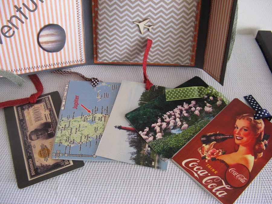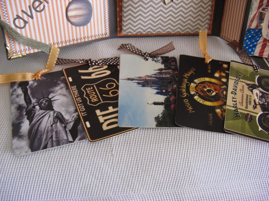 Per fer els tags, vaig utilitzar cartolina de colors gris i a sobre hi vaig enganxar fotos d"imatges típiques dels EEUU i de l"estat de FLORIDA.
