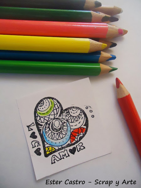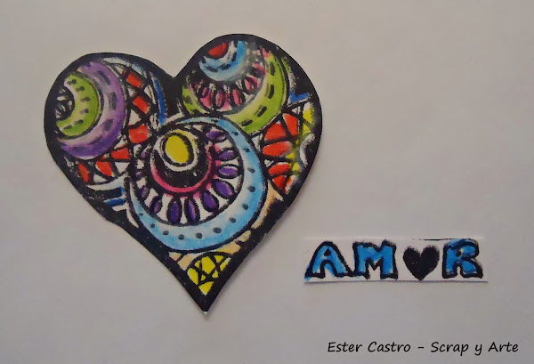 Pintamos con los colores el diseño del sello Corazón y la palabra Amor