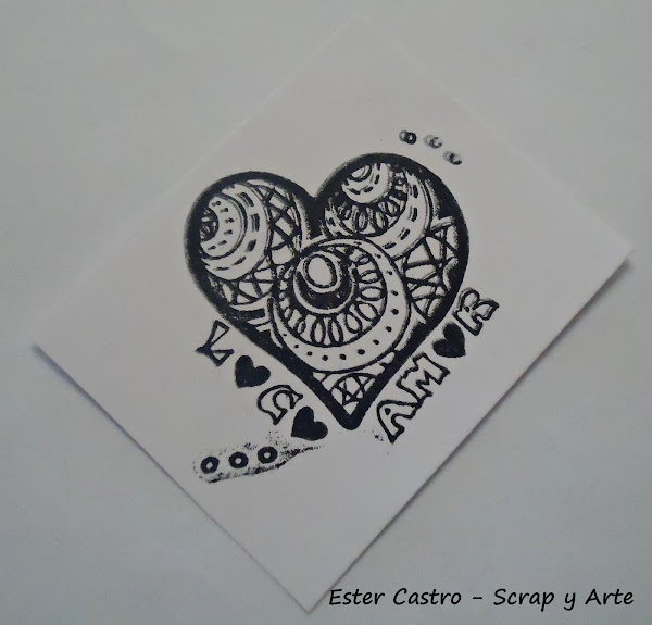 En un pedacito de papel canson (dibujo) estampamos el diseño del sello