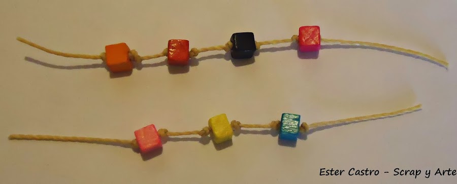 Lo hacemos así: dejamos una colita del hilo o cordón realizamos un nudo colocamos la cuenta y otro nudo dejamos una separación y volvemos a enhebrar las cuentas que necesitemos