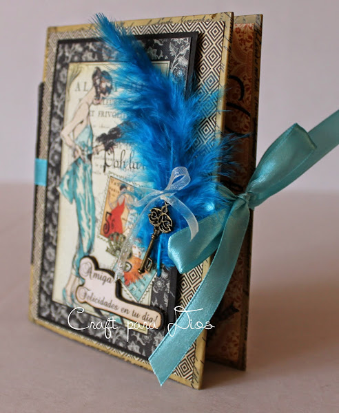 Esta tarjeta la hice con la colección de papeles "Couture" de Graphics 45, son diseños muy femeninos que se aprovechan para este tipo de proyectos.  Si alguien quiere el tutorial puede dejarme su mensaje   para enviárselo, besos!