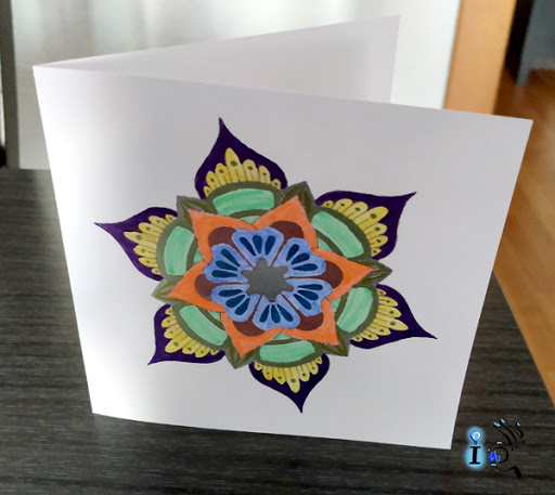 Hoy vengo en un día no habitual pero es que quiero unirme al tercer Bloganiversario de Mía de Craftartista. Para ello hay que usar en alguna creación uno de sus mandalas y yo he decidido hacer una tarjeta para presentar alguno de mis pedidos: