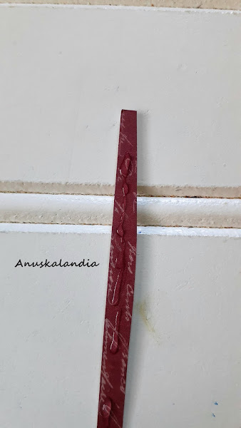 9.- Cortamos con su molde, el bastón del paraguas, pegando igualmente que en el punto anterior, por la parte posterior de la capota. Hacemos lo mismo con el puño, pegando en la parte baja del bastón.