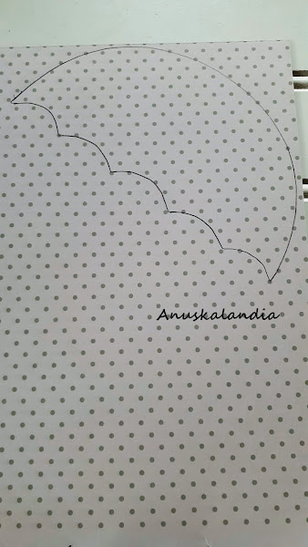 5.- Tomamos la capota o parte superior del molde del paraguas, marcamos en uno de los papeles de scrap. Recortamos.