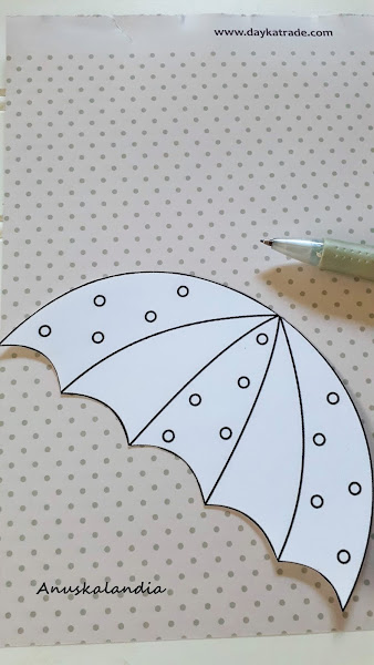 10.- Con los pot-dot adhesivos, los pegamos por la parte posterior, para dar sensación de volumen al paraguas.