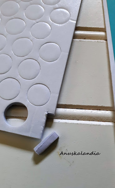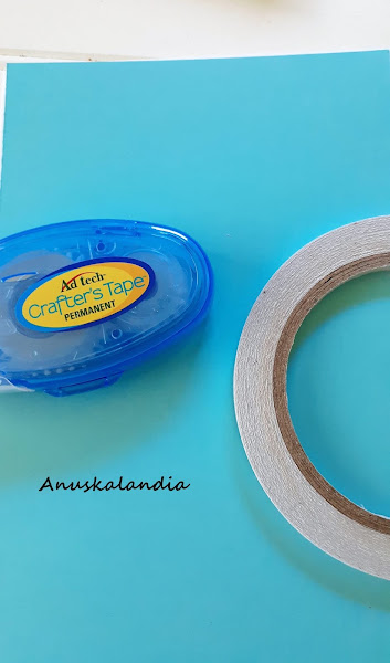 4.- Procedemos a pegar la azul sobre la blanca. Yo he utilizado el crarfters tape. Colocamos alrededor y lo pegamos lo más centrado posible.