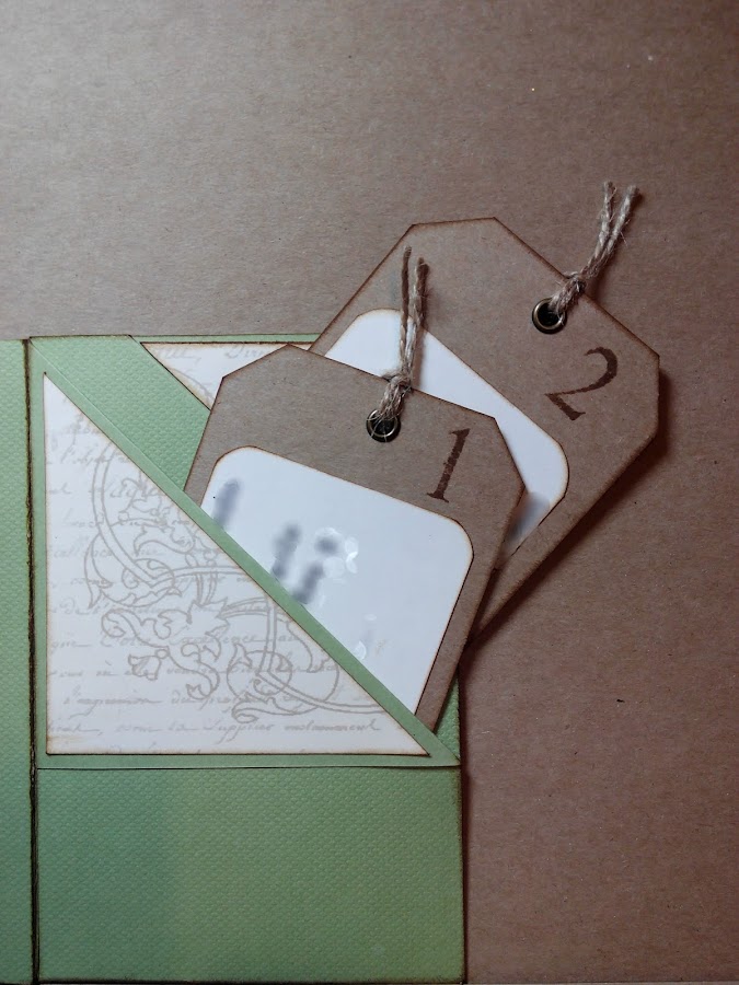 Cuando se abre, tiene dos bolsillos para poner alguna foto, unos tags o etiquetas, mensajes....lo que queráis.