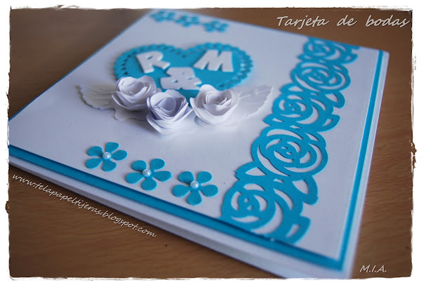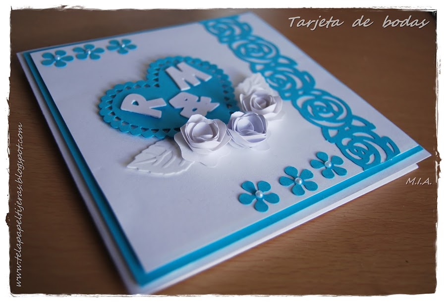 He utilizado solamente cartulina blanca y turquesa y he jugado con la combinación de los dos colores con volúmenes y troqueles...