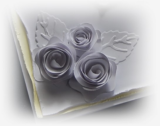 Os presento una tarjeta para felicitar a los novios... Esta vez "muy limpia", no va nada entintado, solo bordes distresados y humedecidos con agua para poderlos trabajar... Las flores son un troquel de Marianne Desing "ENGLISH ROSE 3D - Creatables Dies Stencil Cut Emboss".