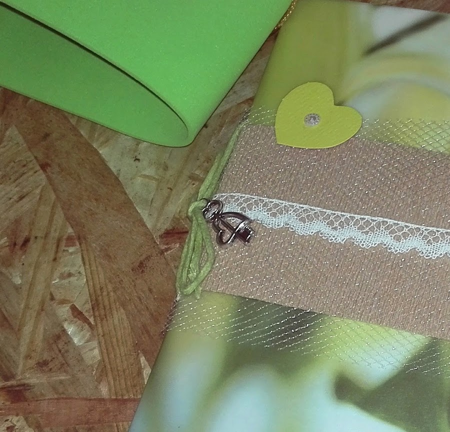 Al otro lado, cinta pistacho. Corazón también pistacho troquelado y brillantito.