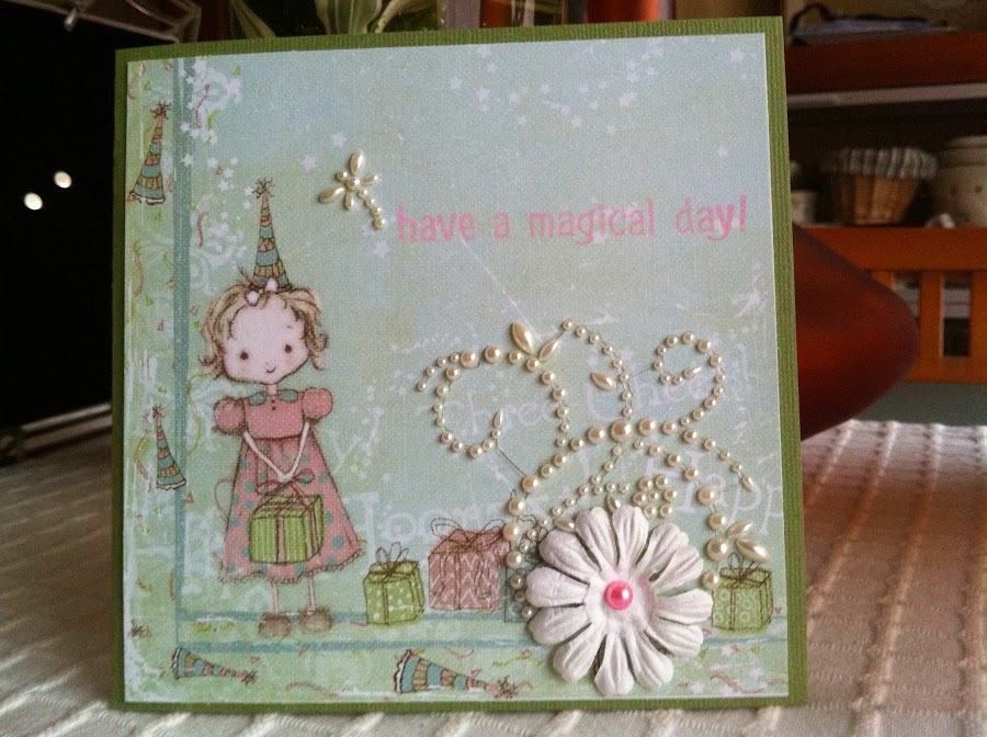Hola, hola. Hoy os traigo una tarjeta de cumpleaños que me encargaron hace poco tiempo. Me lo hacía una chica para regalar a su hermana, y estuvimos un poco "compinchadas" para saber qué papeles le podían gustar a la destinataria. Y como con estos papeles de K&Company no se puede fallar, elegí dos modelos con fondo rojo que son una preciosidad. Ésta fue la tarjeta, y sus detalles: Hic ...