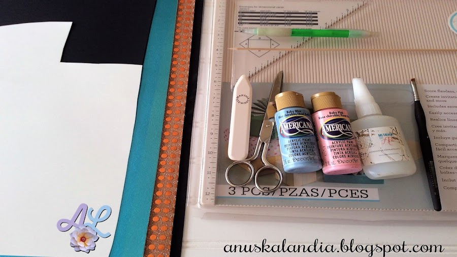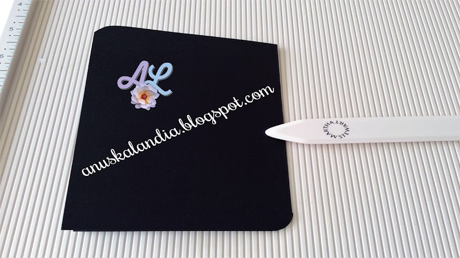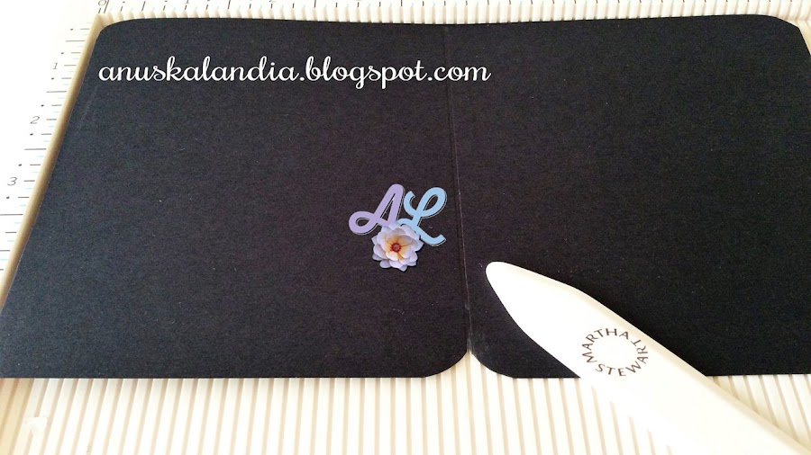8.- Marca el centro de la cartulina negra, con la herramienta que no me acuerdo cómo se llama :). En este caso yo he utilizado una tabla de marcado (más que nada para estrenarla), pero vamos un doblez se hace de cualquier forma.